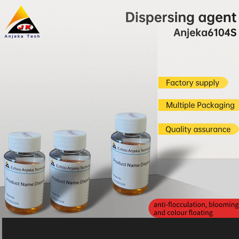 It serves as a wetting and dispersing agent designed to enhance pigment wetting and stabilize pigment dispersion. This function regulates the tendency of pigments and inert pigments to flocculate, preventing undesired color floating or bleeding and avoiding hard settling. Its efficacy is particularly notable in mitigating the binding of titanium dioxide with other colored pigments within medium to high polarity systems. Additionally, it is suitable for use in amine-neutralized and water-based coatings. It exhibits insolubility in solvent gasoline. When incorporated into anti-corrosive primers, it frequently amplifies protective performance. Anjeka6104S includes a minor quantity of polydimethylsiloxane copolymer, augmenting its effectiveness in preventing color floating. The organic silicon component also plays a role in averting Bernard cell vortex and streaks, leading to improvements in surface smoothness, leveling, and the alignment of matting agents or aluminum powder. This can often obviate the necessity for supplementary silicone additives.