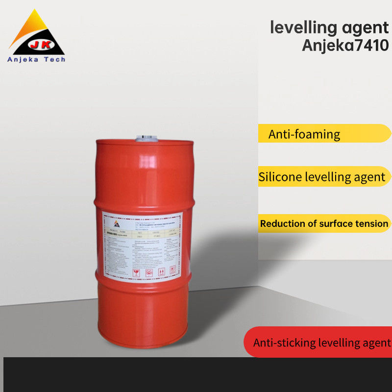 Anjeka7410 is an organic silicone leveling agent with defoaming properties. It mildly reduces the surface tension of coatings, thereby improving flow and leveling while exhibiting partial defoaming characteristics. It also prevents the formation of Benard vortices.