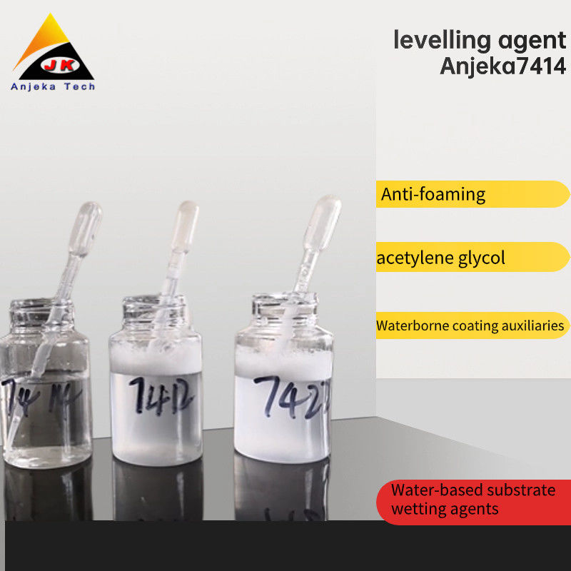 Anjeka7414 is a twin-surfactant non-ionic surface agent belonging to the alkynediol category. It encompasses functionalities such as wetting, leveling, and defoaming.