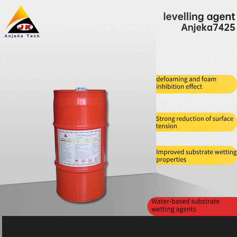 Anjeka7425 is a modified silicone-based wetting agent designed for water-based coatings, printing inks, and gloss oils. It effectively reduces surface tension, significantly enhances substrate wetting, prevents pinholes, and provides excellent defoaming and antifoaming effects.