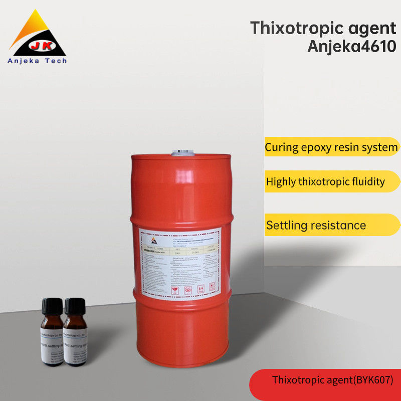Anjeka 4610 is a liquid rheological additive suitable for solvent-borne and solvent-free coating as well as room temperature curing epoxy resin systems. The additive produces highly thixotropic fluidity to improve sag resistance and settling resistance. The additive can be added later.
