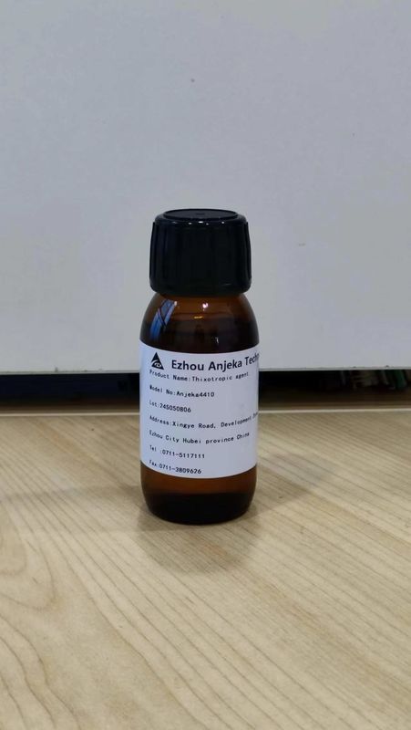 Anjeka 4410 is a liquid rheological additive suitable for medium polarity and solvent-free coating as well as room temperature curing resin systems. The additive produces highly thixotropic fluidity to improve sag resistance and settling resistance. The additive can be added later.