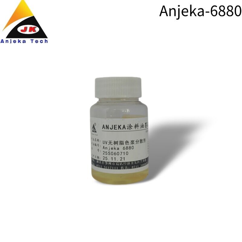 Anjeka-6880 is a high-performance wetting and dispersing additive designed for solvent-free UV-curable inkjet inks. It effectively stabilizes organic pigments and carbon black, significantly reducing grinding viscosity and enhancing long-term storage stability.