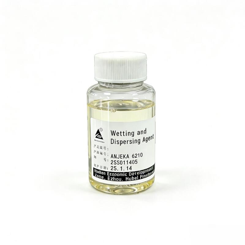 Anjeka-6210 is a polymer dispersant for aqueous coating systems, printing inks and adhesives. It is a standard additive for resin-free pigment concentrates. It is mainly used for grinding inorganic pigments such as titanium dioxide, matting powder, calcium powder, etc. It has good viscosity reduction properties.