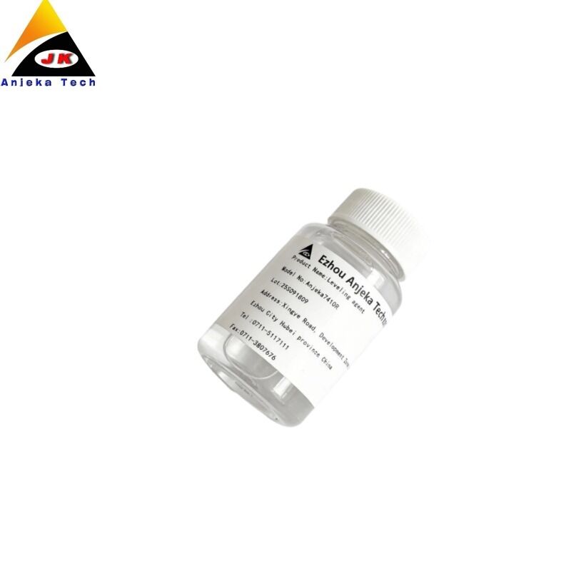 Anjeka-7410 is a silicone leveling agent with defoaming properties. It slightly reduces the surface tension of coatings, thus improving flow and leveling and exhibiting partial defoaming properties and preventing the formation of Bernard swirls.